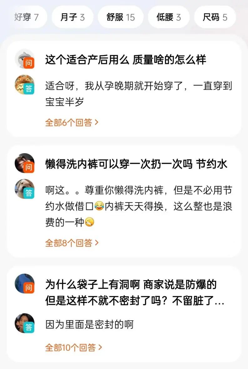 某品牌電商平臺問答區(qū)/淘寶截圖