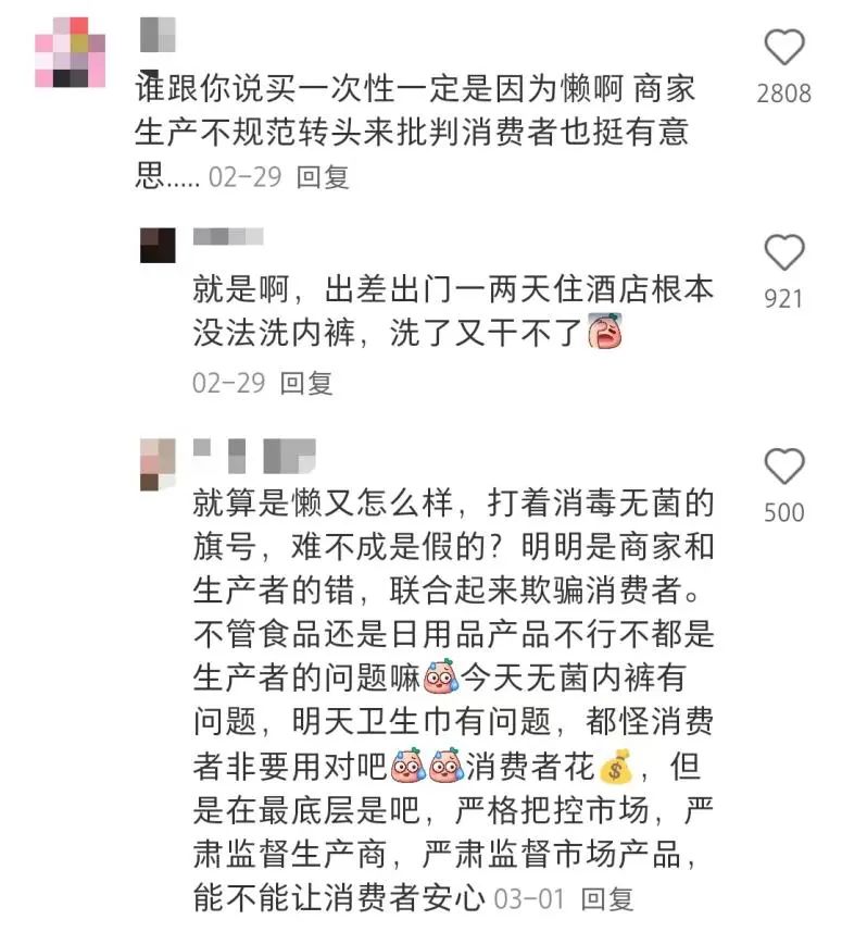 一次性內(nèi)褲“翻車”評論區(qū) 圖片來自小紅書截圖