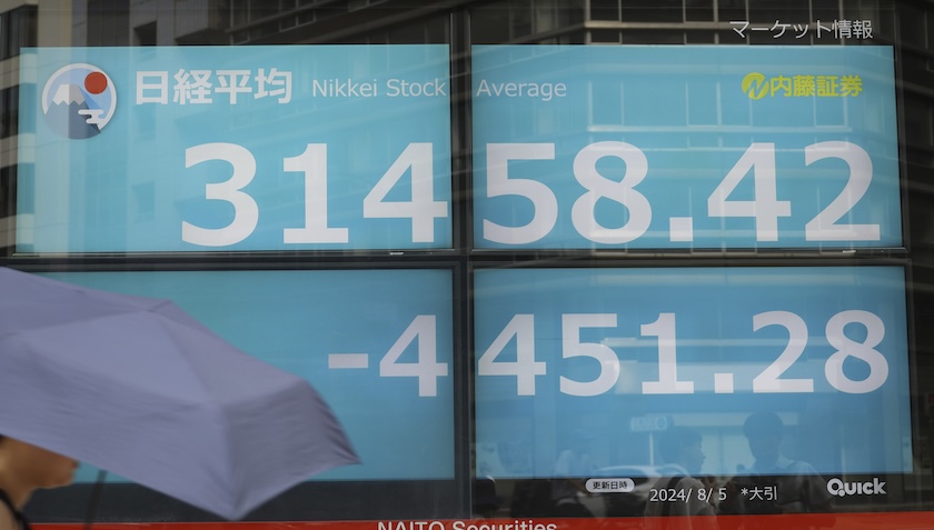 在市場對美國經(jīng)濟的一片看衰中,亞歐股市遭遇“黑色星期一”。8月5日,日本日經(jīng)225指數(shù)暴跌12.4%,抹去今年以來所有漲幅,收盤報31458.42,較前一交易日狂瀉4451.28點,超過1987年10月20日的3836.48點,創(chuàng)史上最大下跌點數(shù)。