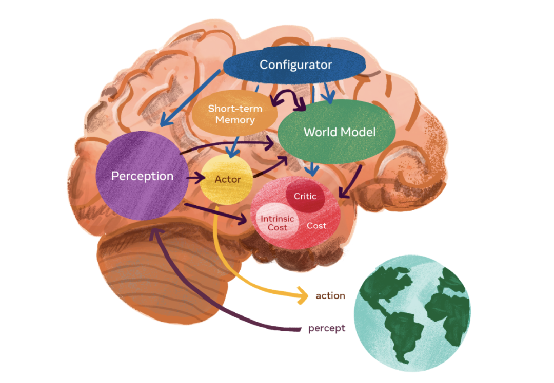 陳羽北:還有就是Yann一直相信的一個東西叫做JEPA,Joint Embedding Predictive Architecture。就是說模型當然要有自主學習的能力,但是比這是更重要的一點是當模型在學習數(shù)據(jù)的時候也能學習到一些比較高層次的規(guī)律。
