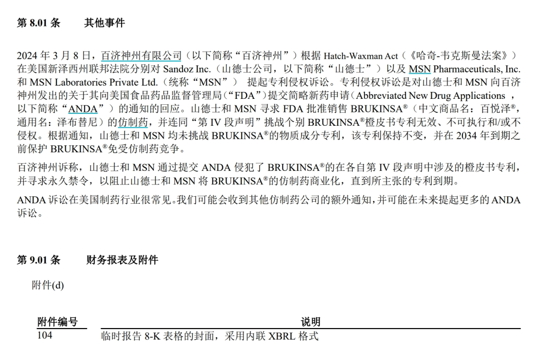 需要注意的是,藥企向FDA去提交ANDA申請的成本并不高,F(xiàn)DA也完全可以拒絕申請。百濟(jì)神州也表示,ANDA訴訟很常見,未來可能還會(huì)收到其他仿制藥公司的額外通知。