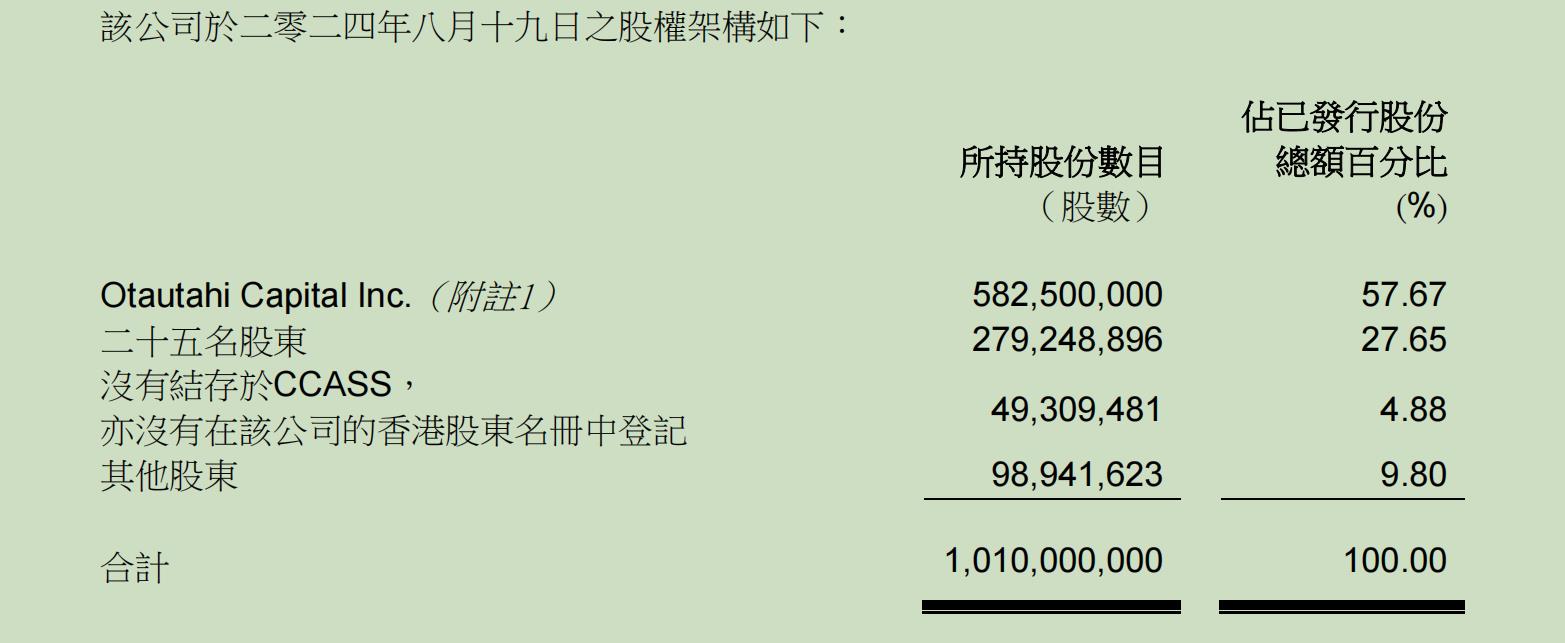 調(diào)查結(jié)果亦顯示,截至2024年8月19日,合計共有4930.95萬股該公司股份(占已發(fā)行股本之4.88%)沒有結(jié)存于中央結(jié)算及交收系統(tǒng),亦沒有在該公司的香港股東名冊中登記。此外,連同公司一名控股股東持有的5.83億股股份(占已發(fā)行股本的57.67%),合計相當(dāng)于公司發(fā)行股本的90.20%。