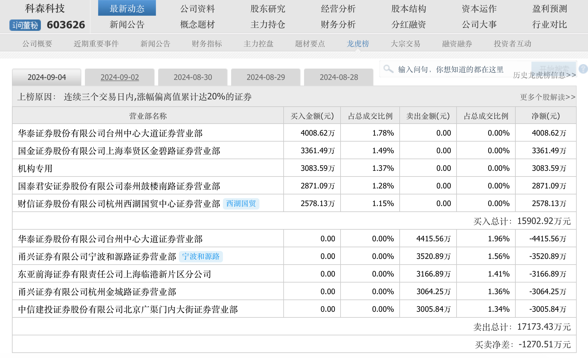 另外,科森科技也強(qiáng)調(diào),公司2024年上半年處于虧損狀態(tài),預(yù)計(jì)2024年度虧損,目前股票價(jià)格已經(jīng)嚴(yán)重背離公司基本面,存在過度非理性炒作風(fēng)險(xiǎn)。