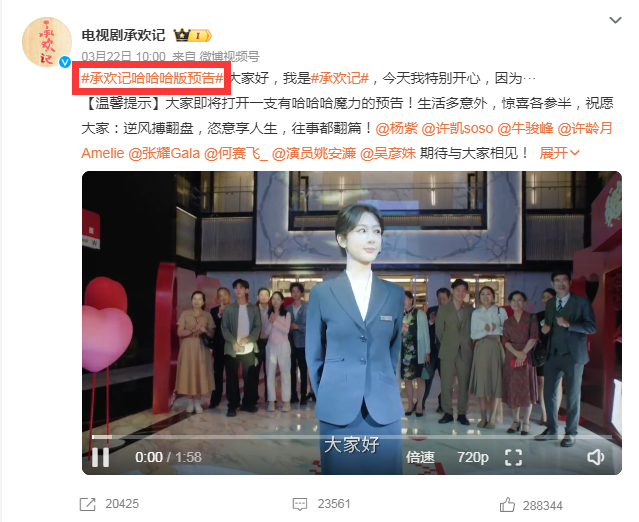從營(yíng)銷(xiāo)的角度來(lái)講,還有一個(gè)現(xiàn)象就是創(chuàng)作過(guò)程很正經(jīng),一到播出變喜劇。有過(guò)多年?duì)I銷(xiāo)經(jīng)驗(yàn)的李詩(shī)佳表示,劇集的受眾可能有泛眾或者窄眾,喜劇是一個(gè)全民向的題材,很多偶像劇都會(huì)在預(yù)告片階段就剪一版喜劇版預(yù)告,力求最大程度吸引受眾,甚至不少現(xiàn)實(shí)題材劇都會(huì)如此,哪怕只有少量的輕喜元素或者段子,也要全部剪出來(lái),“證明”自己合家歡。