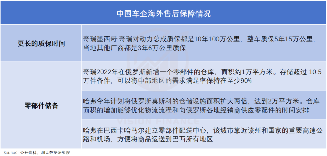 出海玩家們也考慮到了這一點(diǎn):當(dāng)?shù)剀嚻筚|(zhì)保3年,中國(guó)車企就保5年、10年;同時(shí),零部件儲(chǔ)備管夠,主打讓消費(fèi)者買得放心。