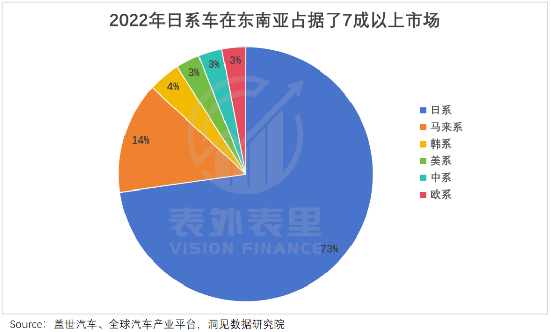 當(dāng)然,這樣的砸錢開荒只適合增量市場(chǎng),海外更多的是山頭林立、堅(jiān)若磐石的成熟市場(chǎng)。典型如東南亞,日系車曾占據(jù)73%的市場(chǎng)份額,勢(shì)力龐大、盤根錯(cuò)節(jié)。