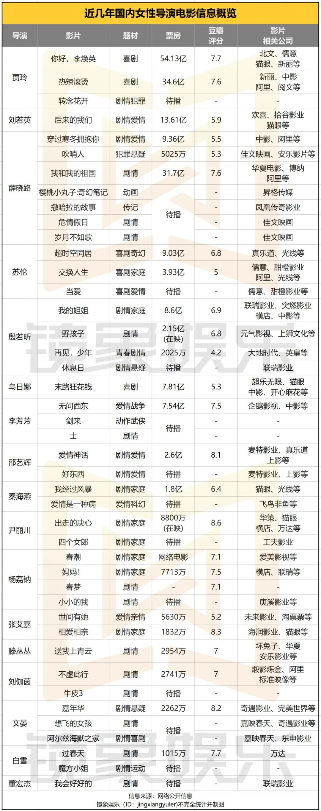 從鏡象娛樂的統(tǒng)計中也可看到,近幾年,不少女性導(dǎo)演的作品背后,不乏中影、光線、儒意、萬達(dá)等頭部影企。盡管女性導(dǎo)演的作品并不全都是女性題材作品,但在天然的女性視角下,女性導(dǎo)演的作品確實更容易觸及女性群體的生存困境,而有了資本助推,女性創(chuàng)作者與女性題材作品成長得更快。