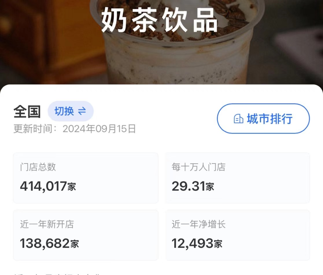 據(jù)窄門餐眼顯示,截止到9月15日,茶飲賽道近一年新開店138682家,但凈增長(zhǎng)只有12493家,意味著,短短一年,近13萬家店鋪已經(jīng)不復(fù)存在。