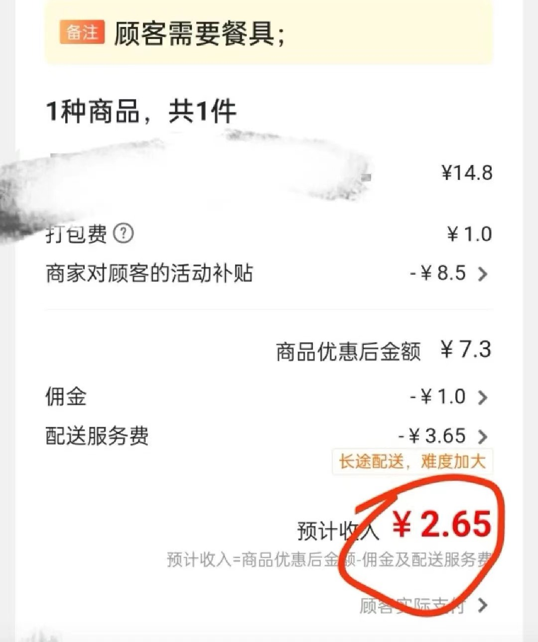 她仔細(xì)算過一筆賬,一般情況下,參與拼好飯活動(dòng),14.8元的飲品打完折后是7.9元,商家到手只有50%,實(shí)際收入只有3.95元,更極端的情況下,一杯14.8元的飲品,扣除平臺(tái)抽成、傭金和廣告費(fèi)后,實(shí)際到手的只有2.65元,幾乎無利可圖。