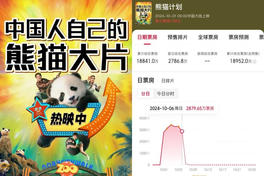 反倒是映前普遍并不被看好的《熊貓計(jì)劃》,上映之后單日票房實(shí)現(xiàn)了3次逆跌,最近幾日已經(jīng)來到了日票房第三的位置?!俺升堧娪啊辈痪邆淦狈刻?hào)召力已多年,這是導(dǎo)致映前預(yù)期不高的核心原因。但檔期內(nèi)部喜劇的匱乏,讓《熊貓計(jì)劃》還是被推到了高位。今年國慶檔僅《熊貓計(jì)劃》和《爆款好人》兩部喜劇,前者又顯而易見比后者更接地氣,自然成為了不少將喜劇視作剛需的觀眾首選。喜劇在任何檔期的重要性又再度被強(qiáng)調(diào)。
