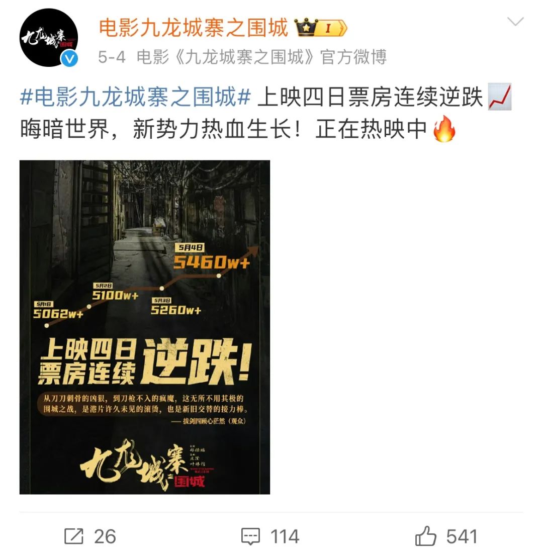 今年五一檔的《九龍城寨之圍城》,選擇提前一周開啟點(diǎn)映,既拯救了檔期前的大盤,也給影片本身積累了口碑勢(shì)能。五一正式上映之后,連續(xù)3天實(shí)現(xiàn)逆跌,成功在市場(chǎng)對(duì)港片的一片唱衰聲中殺出一條血路。