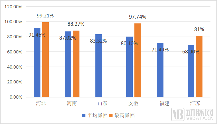 硬腦(脊)膜補(bǔ)片帶量采購降幅統(tǒng)計(jì),數(shù)據(jù)來源于易聯(lián)智慧云