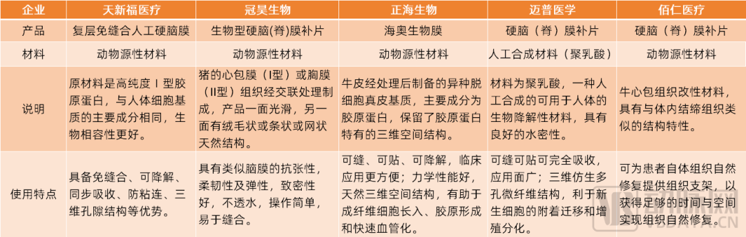 現(xiàn)階段,國內(nèi)市場上的主流硬腦膜產(chǎn)品主要來自天新福、冠昊生物、正海生物、邁普醫(yī)學(xué)、佰仁醫(yī)療等企業(yè),合計(jì)占據(jù)超92%市場。