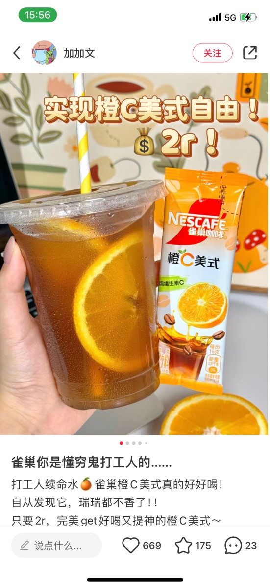 對(duì)于“窮鬼打工人”和“早八學(xué)生黨”而言,雀巢2元一袋的速溶橙c美式,遠(yuǎn)比瑞幸9.9元一杯的同款飲品,更具吸引力。