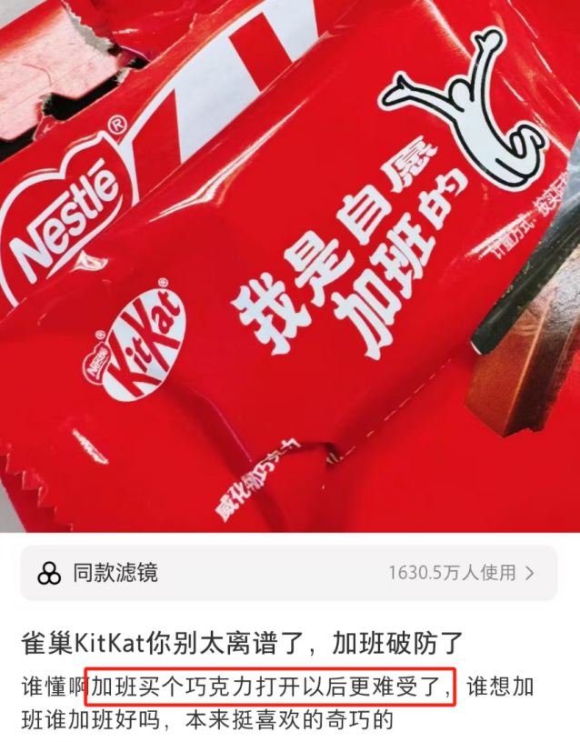 雀巢企圖站在打工人角度,玩抽象拉近與消費(fèi)者之間的距離,但當(dāng)一個(gè)真正加班的牛馬掏出雀巢產(chǎn)品,只會(huì)憤怒加倍。