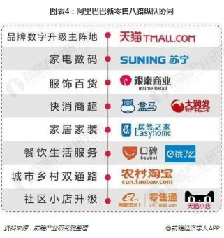 加上高鑫零售的好友,又收購了外賣平臺(tái)餓了么,再加上早先的布局,新零售八路縱隊(duì)集合完畢——線上有天貓打頭,農(nóng)村淘寶補(bǔ)齊站位,盒馬做好示范,蘇寧、銀泰、大潤(rùn)發(fā)、居然之家緊隨其后,口碑、餓了么布局餐飲,同時(shí)也開發(fā)了零售通,天貓小店等協(xié)助商家銷售平臺(tái)。