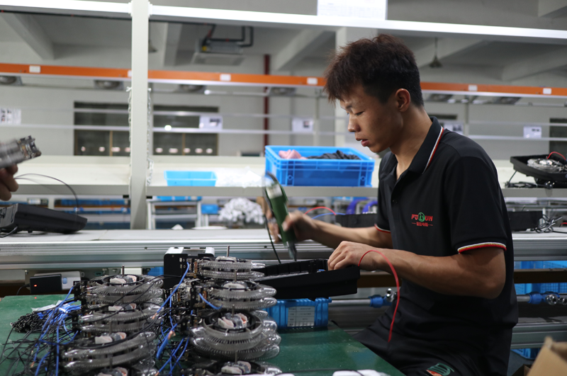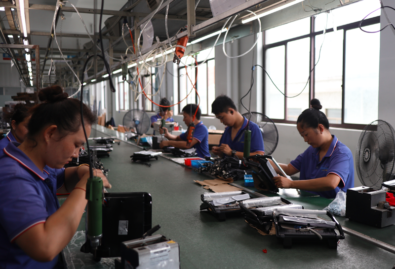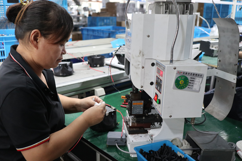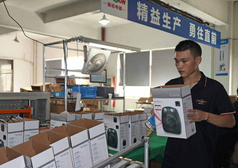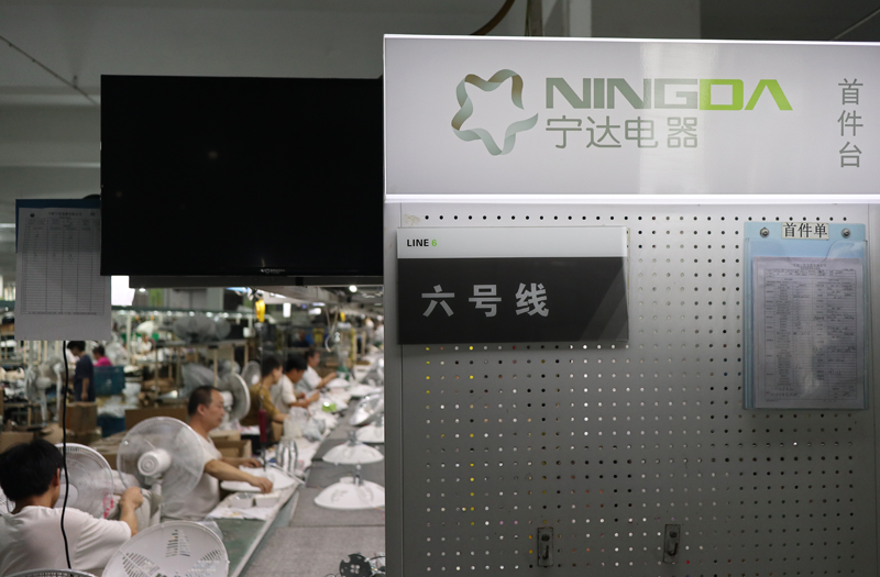 在離艾肯智不遠(yuǎn)的寧波寧達(dá)電器有限公司內(nèi)同樣一派繁忙的景象:組裝、測(cè)試、裝箱 、貼標(biāo)……一臺(tái)臺(tái)電扇正被生產(chǎn)出來(lái)等待發(fā)貨。公司總經(jīng)理余輝向界面新聞介紹,這款電扇采用腳踩式設(shè)計(jì)“懶人友好”,不用彎腰就能輕松操控,在韓國(guó)等市場(chǎng)成為了爆款,年銷售額超過(guò)150萬(wàn)美金。