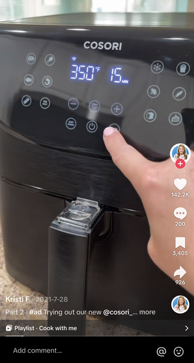 在空氣炸鍋烹飪美食的視頻里,很多博主使用的空氣炸鍋上都標(biāo)有“Cosori”的品牌名,“Cosori” 背后是國(guó)內(nèi)一家名為晨北科技的公司;在一些早上起床煮雞蛋的視頻里,能看到印有“Bear”卡通字體的煮蛋器,它的生產(chǎn)商是上市后曾被譽(yù)為“國(guó)內(nèi)小家電第一股” 的小熊電器。