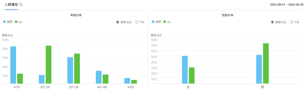 如今QQ入局虛擬社交,與星野相比,QQ的用戶(hù)群體雖然體量大,但對(duì)年輕人的吸引力正在減弱。據(jù)百度指數(shù)顯示,在20歲以下,星野的搜索關(guān)注度大幅超越QQ,性別分布上也是男性群體QQ占比較高一些,失去青少年、失去女性的關(guān)注是個(gè)值得關(guān)注的信號(hào),畢竟QQ起家時(shí),Pony還裝扮女性和用戶(hù)聊天。
