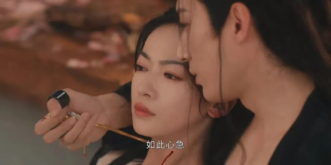 而堪比短劇的快節(jié)奏更加凸顯了《春花焰》的“瘋感”。男主被當(dāng)街唾棄砸饅頭卻張口就吃,女主為了復(fù)仇在“找死”的邊緣反復(fù)試探,二人更是在第一集就上演了浴池掐脖吻的高能橋段,帶感的情節(jié)快速吸引了第一波觀眾。