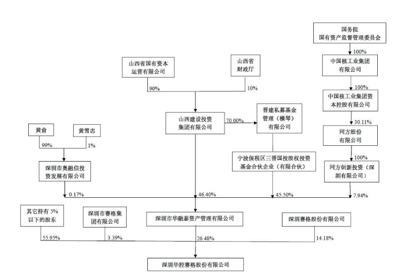 華控賽格直接控股股東為深圳市華融泰資產(chǎn)管理有限公司下稱華融泰資管公司),間接控股股東為山西建投投資集團(tuán)有限公司(下稱山西建投),實(shí)際控制人系山西省國有資本運(yùn)營有限公司,而后者隸屬于山西省國資委。