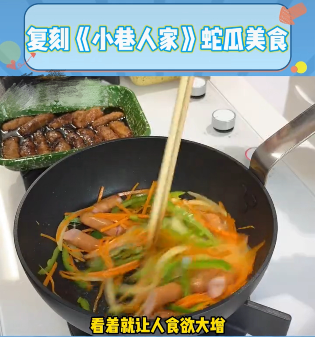 在短視頻搜索“蛇瓜”,你會(huì)收獲一群《小巷人家》的劇粉。劇中,蔣欣和閆妮為了節(jié)約生活成本,在院子種蛇瓜。剛開(kāi)始還沉浸在豐收的喜悅里,后來(lái)完全對(duì)這種食物PTSD。蔣欣更是仰天長(zhǎng)嘆,炒蛇瓜、蛇瓜湯、蛇瓜餃子,啥時(shí)候是個(gè)頭???