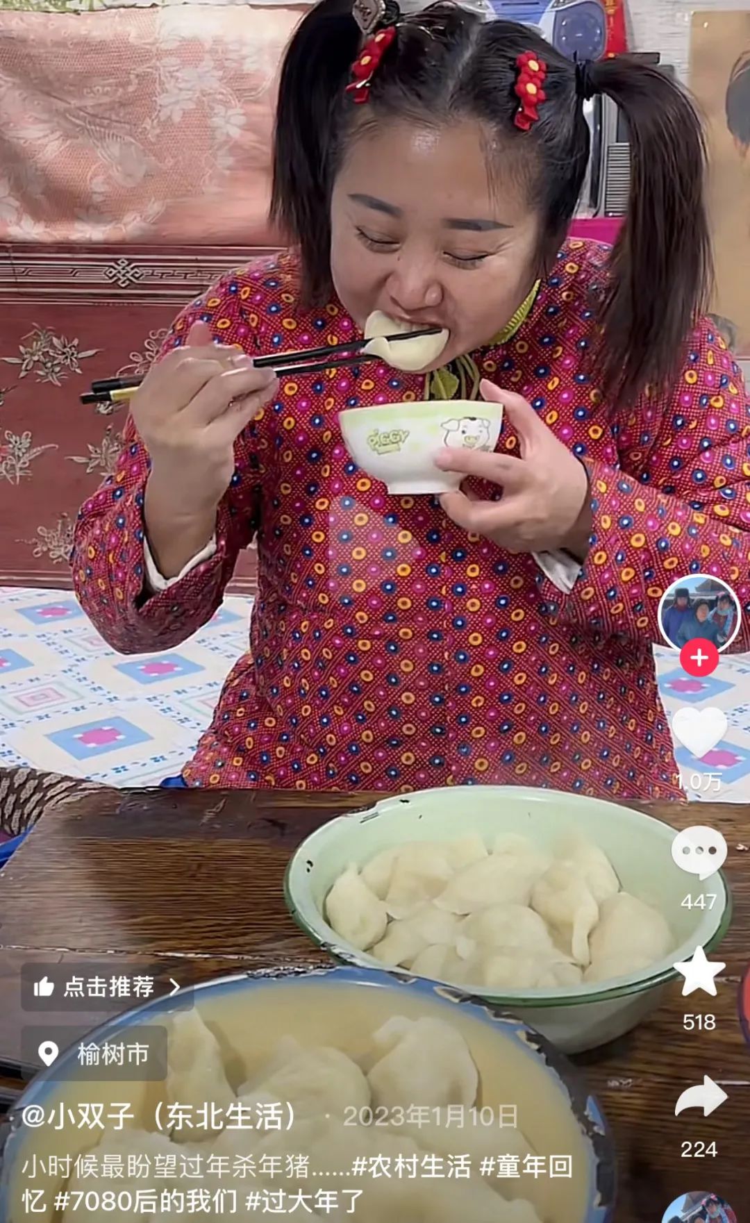 就像《我在八零年代當(dāng)后媽》一樣,人們需要一種懷舊型文娛產(chǎn)品來(lái)蕩滌心靈。點(diǎn)開(kāi)短視頻,假裝生活在90年代的東北生活劇場(chǎng)里,一群博主穿著花襖子開(kāi)著小賣部、吃著老式辣條、炸著豬油渣,把年輕觀眾糊弄得不要不要的。只有真正的“老人”可以揭穿他們:你這種辣條05年之后才有的,騙誰(shuí)呢!