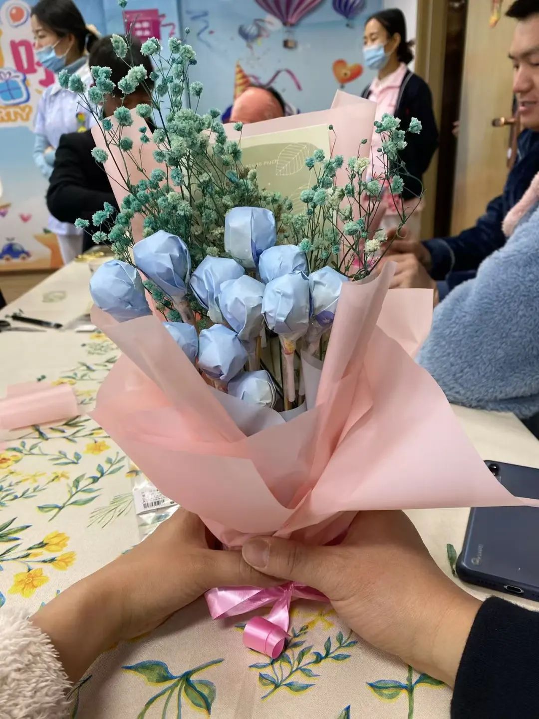 章莜收到月子中心準備的花束。圖 / 講述者提供