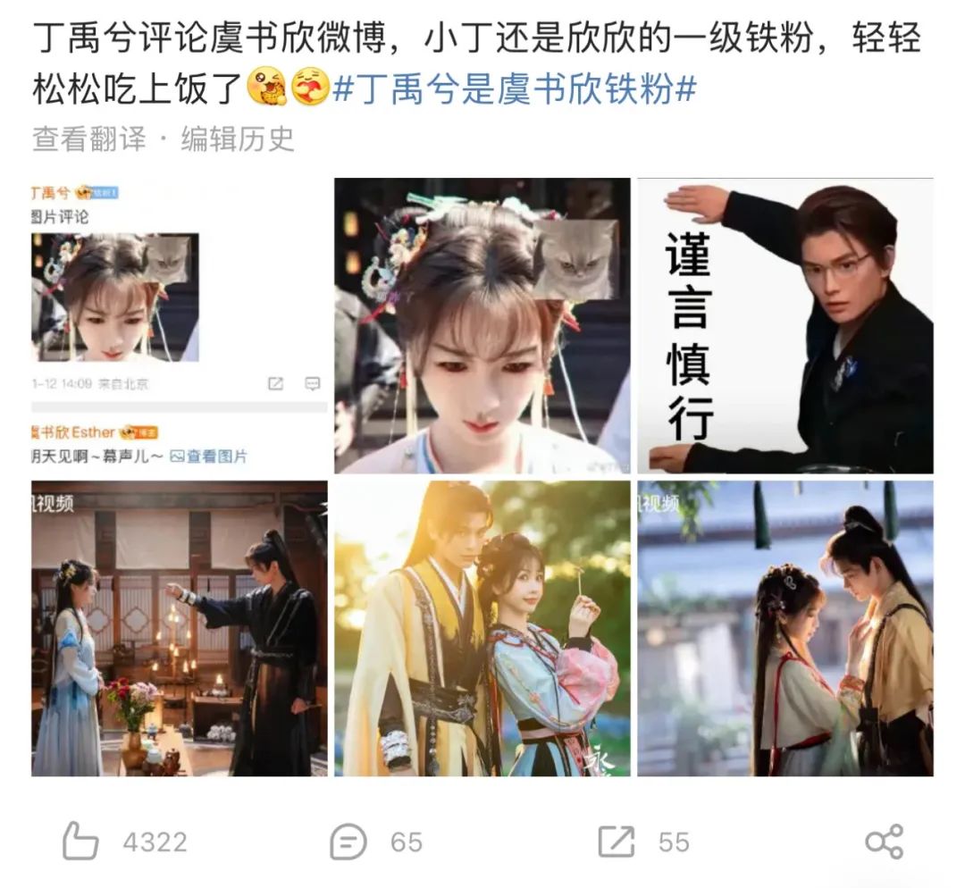 然后,豹豹一定要是貓貓的粉絲,這樣可以細品男主對女主的眼神戲。如“丁禹兮是虞書欣鐵粉”、“李昀銳是孟子義一級鐵粉”、“王星越是吳謹言一級鐵粉”。