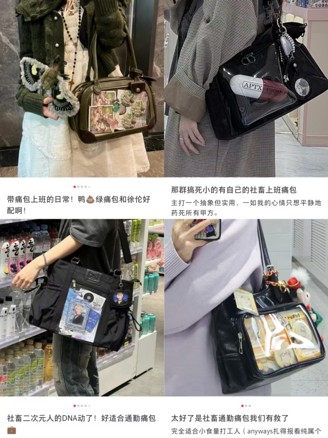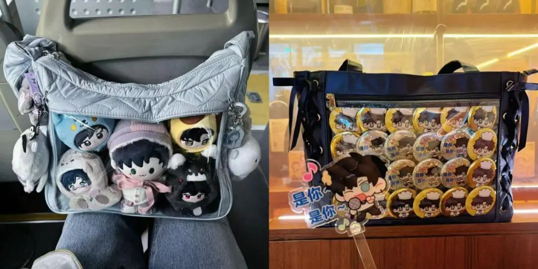 與“痛車”類似,在包包裝飾上滿滿的動(dòng)漫周邊,再在外面套一個(gè)透明層,像是行走的櫥窗,既保護(hù)了心愛的周邊產(chǎn)品,也彰顯了個(gè)性,更重要的是,標(biāo)明身份方便認(rèn)親。