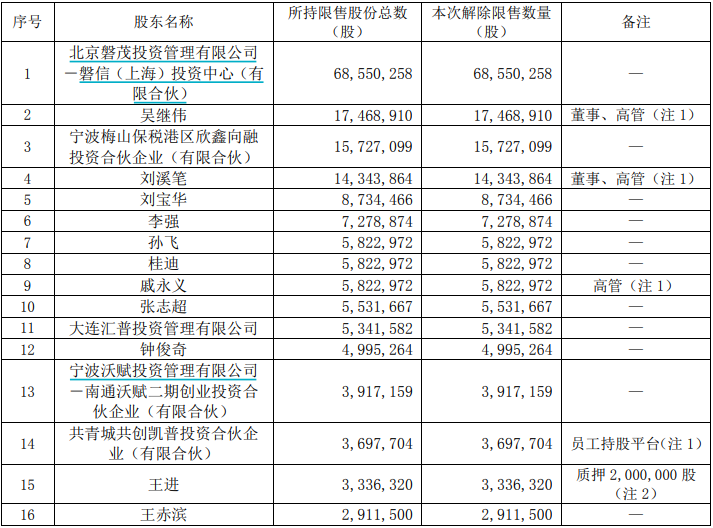 此次解禁股東共14位,包括多家機構和自然人,解禁籌碼分散,解禁壓力較大。