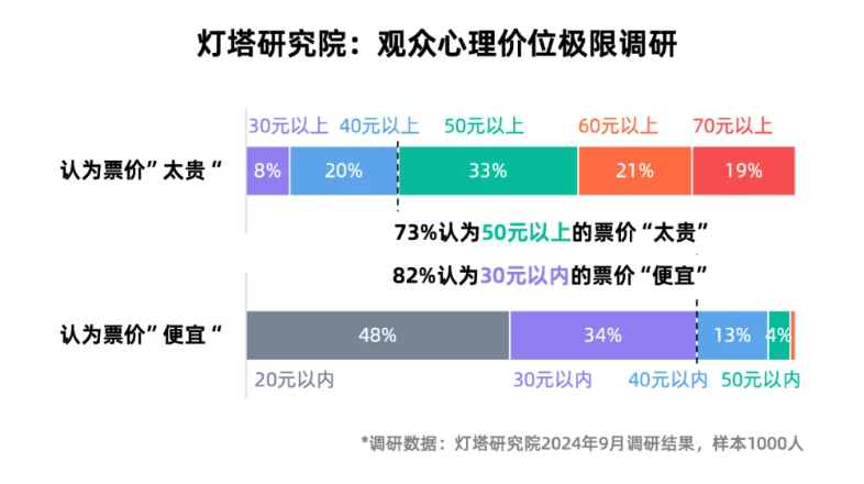 據(jù)燈塔調(diào)研,93%的觀眾認(rèn)為40元以上的票價“太貴”,82%的觀眾認(rèn)為30元以內(nèi)的票價“便宜”,因此《“騙騙”喜歡你》和《火鍋藝術(shù)家》降價之后維持在32-35元的區(qū)間,很難構(gòu)成“便宜”的心智,只是“不貴”而已。