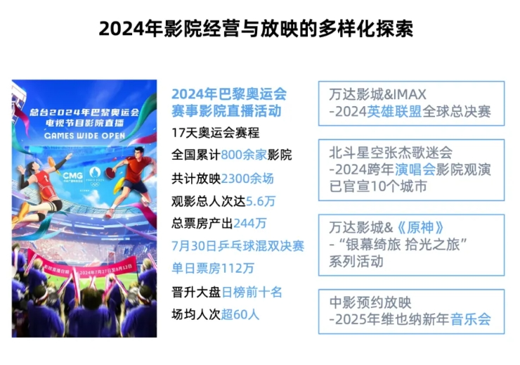 幸好,今年影院多樣化的形式與動作層出不窮,為觀影體驗(yàn)帶來源源不斷的新意。首先是內(nèi)容端,諸如演唱會電影、舞劇電影、奧運(yùn)會直播、英雄聯(lián)盟全球總決賽直播等多種內(nèi)容形態(tài)都在影院大銀幕上陸續(xù)與觀眾見面。雖然這些內(nèi)容形態(tài)所產(chǎn)生的實(shí)際票房,相對大盤而言實(shí)在有限,但其對于消費(fèi)者的心智種植價值要遠(yuǎn)大于實(shí)際票房收益。人們會越來越意識到,大銀幕能做的事情還有很多。