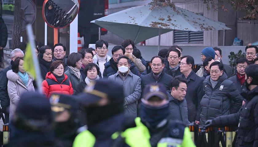 首爾西部地方法院于去年12月31日以涉嫌發(fā)動(dòng)內(nèi)亂和濫用職權(quán)為由對(duì)尹錫悅首次簽發(fā)逮捕令,逮捕令的有效期截至今年1月6日24時(shí)。1月3日,聯(lián)合偵查組試圖逮捕尹錫悅,遭到總統(tǒng)警衛(wèi)處阻攔。雙方對(duì)峙6個(gè)小時(shí)后,偵查組暫停行動(dòng)。