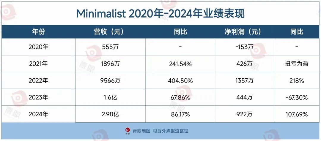 凈利潤方面,Minimalist成立一年后就開始盈利,且在2022年和2024年均達到三位數(shù)的同比增長。值得一提的是,Minimalist的凈利潤曾在2023年同比下滑67.3%。對此,Minimalist方面曾對外公開表示,“利潤下滑是因為公司在這一年投入了大筆資金進行招聘和團隊建設(shè)工作。到2023年末,公司已從起初的80人發(fā)展到650名員工?!?/p>