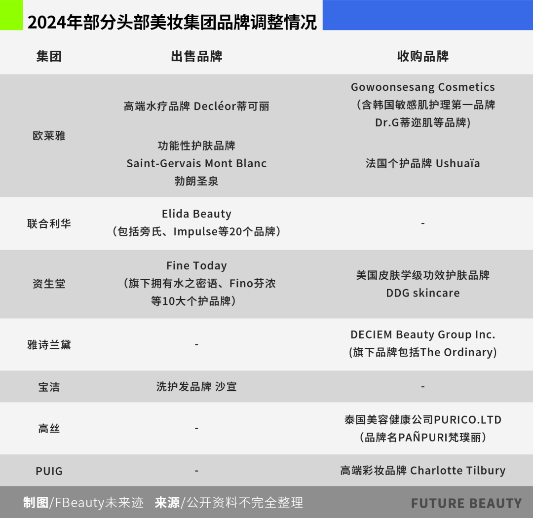 收購或出售旗下品牌其實(shí)是跨國美妝集團(tuán)們每年都要進(jìn)行的常見操作,但是觀察可以發(fā)現(xiàn),2024年品牌的“加減法”相較以往已經(jīng)產(chǎn)生明顯不同。