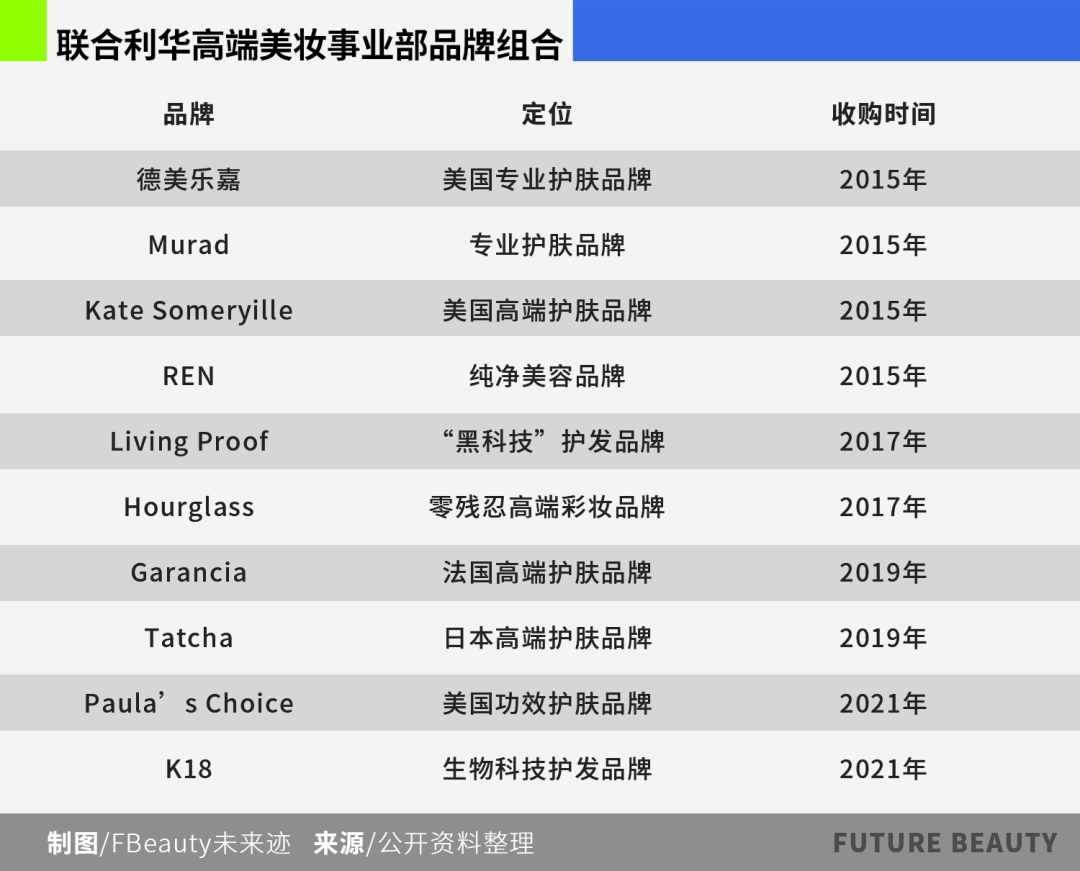 而聯(lián)合利華也有意發(fā)力高端美妝。此前聯(lián)合利華已經(jīng)為其美妝板塊覓得一位“掌舵手”,任命前寶潔高管Mary Carmen Gasco-Buisson為高端美妝事業(yè)部新首席執(zhí)行官。而通過持續(xù)且密集的并購,聯(lián)合利華已經(jīng)打造出一個10大品牌組成的高端美妝矩陣,覆蓋護(hù)膚、彩妝、護(hù)發(fā)三大賽道。