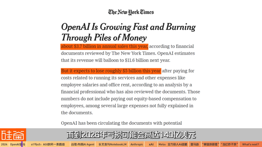 《紐約時(shí)報(bào)》獲得的融資文件顯示,OpenAI2024年預(yù)計(jì)收入達(dá)到37億美元,但預(yù)計(jì)虧損將達(dá)到50億美元,而2026年虧損可能會(huì)高達(dá)140億美元,這一估算還不包括給員工的股票激勵(lì)兌現(xiàn)。