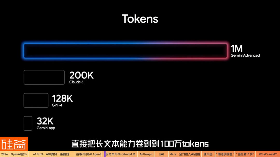 在2024年,被谷歌卷起來且處于業(yè)界領(lǐng)先地位的還有它的“長(zhǎng)文本”的能力,這個(gè)長(zhǎng)文本能力指的是讓大模型理解超長(zhǎng)的上下文。而基于這個(gè)能力,谷歌在2024年也衍生出了一些爆款A(yù)I產(chǎn)品,包括NotebookLM。