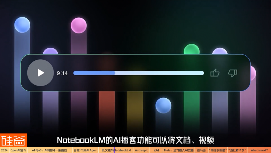 12月中旬,谷歌發(fā)布NotebookLM Plus,新加入audio overview功能、允許用戶在播客中間打斷AI主播,提出建議或問題進(jìn)行交互,同時(shí)用戶還可以自定義播客風(fēng)格和主題。