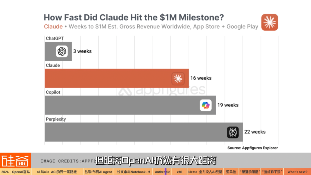 事實(shí)證明,4o發(fā)布之后,特別是在免費(fèi)版本中提供有限的4o功能和4o-mini之后,ChatGPT的訂閱人數(shù)大幅上升,依然在2C領(lǐng)域上遠(yuǎn)超競(jìng)爭(zhēng)對(duì)手。