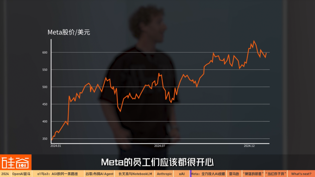 除了創(chuàng)始人扎克伯格最近的突變形象和婚姻八卦之外,臉書毫無疑問是2024年的科技大贏家之一:?jiǎn)螐墓蓛r(jià)就能看出來,2024年漲了70%左右,Meta的員工們應(yīng)該都很開心。