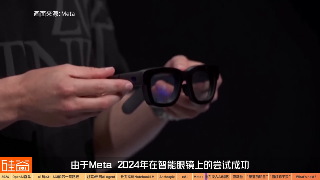 Jefferies的分析師甚至將Meta選為步入2025年生成式人工智能的“贏家”。不少二級(jí)市場(chǎng)的報(bào)告認(rèn)為,Meta下一代與AI結(jié)合的Orion AR眼鏡將成為新一代硬件入口,Meta在2024年推出的Ray-Ban Meta很初步的將AI功能引入其中,受到市場(chǎng)好評(píng)。