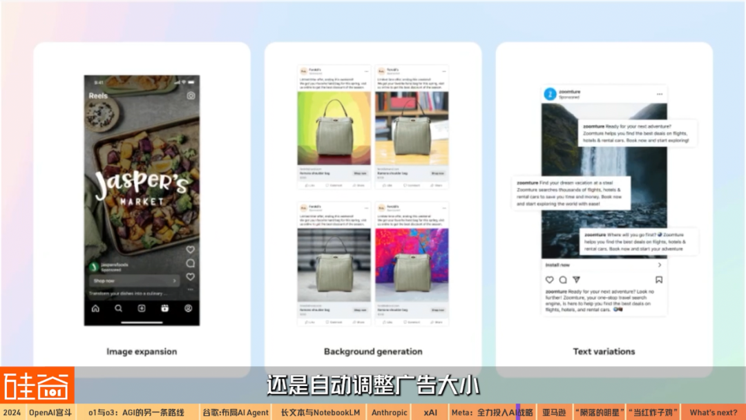 而最后一點(diǎn)就是AI在廣告上的應(yīng)用潛力。Meta在12月表示,目前超過100萬的廣告商在使用Meta的GenAI工具,他們?cè)谝粋€(gè)月之內(nèi)制作了超過1500萬條廣告。