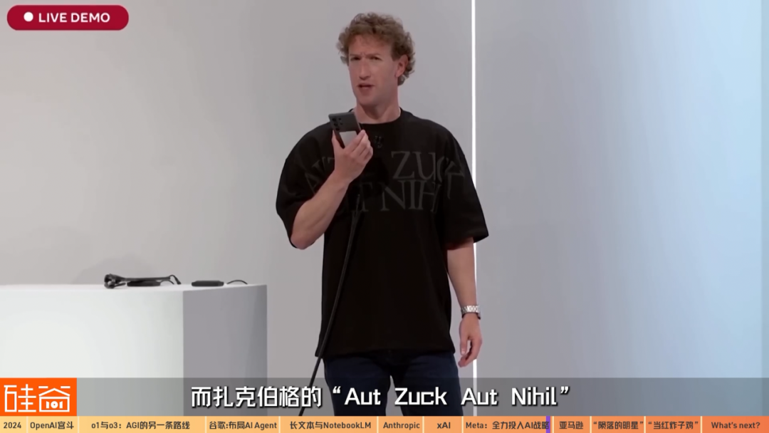 2024年9月,開始在形象和穿搭上大轉(zhuǎn)型的扎克伯格穿了一件T-shirt,上面寫著“Aut Zuck Aut Nihil”,這個(gè)細(xì)節(jié)被媒體捕捉到。