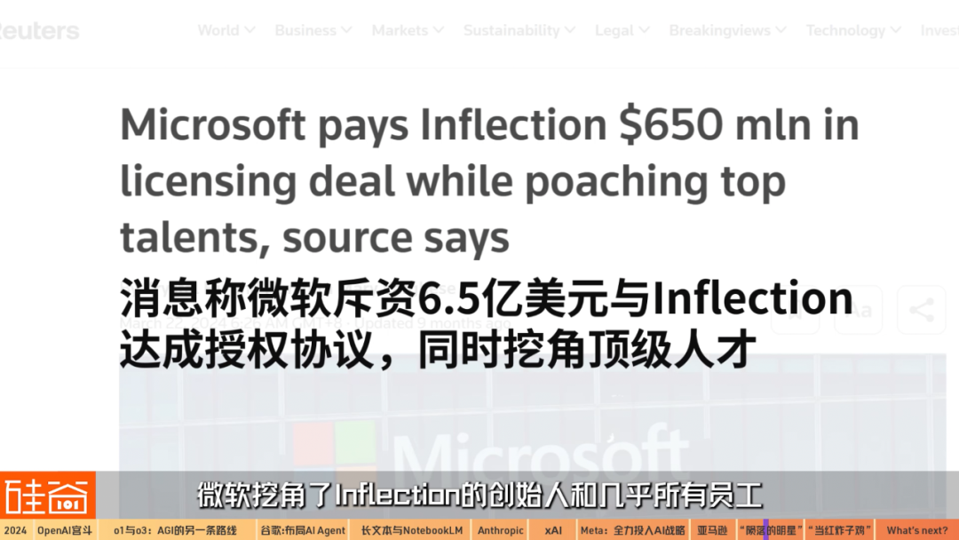 2024年3月,微軟挖角了Inflection 的創(chuàng)始人和幾乎所有員工,成立了一個(gè)新的消費(fèi)者AI部門,并支付了約6.5億美元購買其技術(shù)許可。