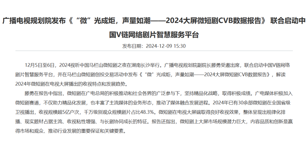 8月1日,國(guó)家廣播電視總局印發(fā)《關(guān)于豐富電視大屏內(nèi)容 進(jìn)一步滿足人民群眾文化需求的意見(jiàn)(試行)》,釋放了三個(gè)信號(hào),一是短劇可以登陸電視臺(tái),二是電視臺(tái)也可以制作短劇,三是短劇不再“登不上臺(tái)面”,反而會(huì)成為臺(tái)網(wǎng)聯(lián)動(dòng)的新橋梁。