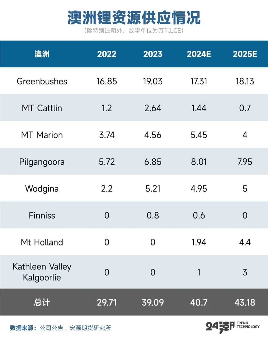 2024年成熟鋰礦項(xiàng)目的穩(wěn)定增長(zhǎng)基本印證了市場(chǎng)對(duì)鋰資源供給寬松的預(yù)期,但鋰價(jià)持續(xù)下跌使得澳礦企業(yè)開始調(diào)整策略,通過主動(dòng)停減產(chǎn)來應(yīng)對(duì)市場(chǎng)壓力。