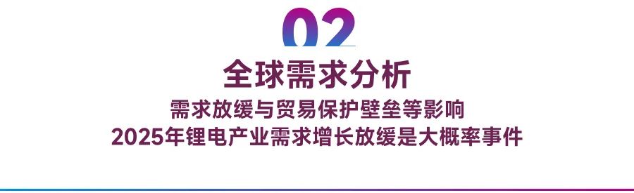 綜上所述,由于特朗普上臺(tái)對(duì)華加征關(guān)稅,歐洲反補(bǔ)貼調(diào)查,貿(mào)易保護(hù)主義抬頭影響全球電動(dòng)化進(jìn)程疊加國內(nèi)目前新能源汽車內(nèi)銷滲透率已經(jīng)超過50%,2025年動(dòng)力電池主導(dǎo)的鋰電產(chǎn)業(yè)需求增長(zhǎng)趨勢(shì)放緩是大概率事件。