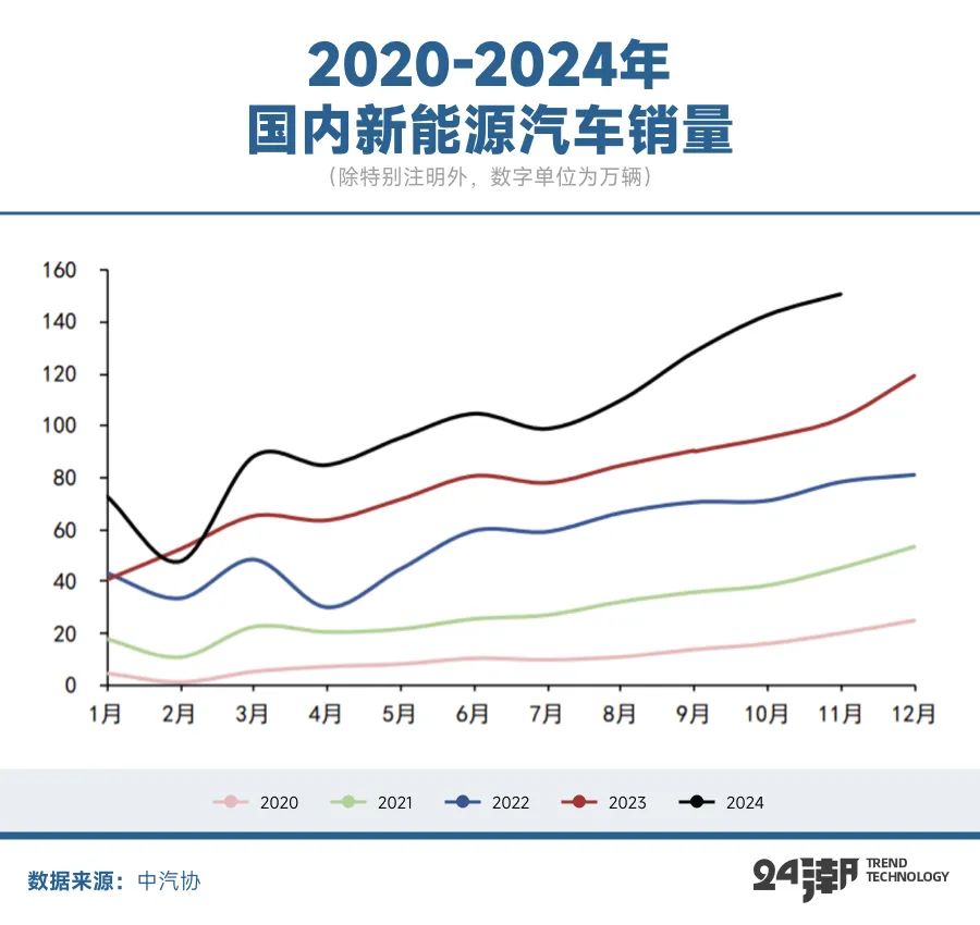 此外,由于地緣政治和貿(mào)易保護(hù)等原因,我國新能源汽車出口受限現(xiàn)象較為嚴(yán)重,據(jù) “崔東樹” 統(tǒng)計(jì)顯示,2024年1-11月國內(nèi)新能源汽車出口186萬輛,同比增長(zhǎng)13%,而去年同期增速為87%。其中11月新能源汽車出口量14萬臺(tái),同比下降14%,環(huán)比上月下降32%。
